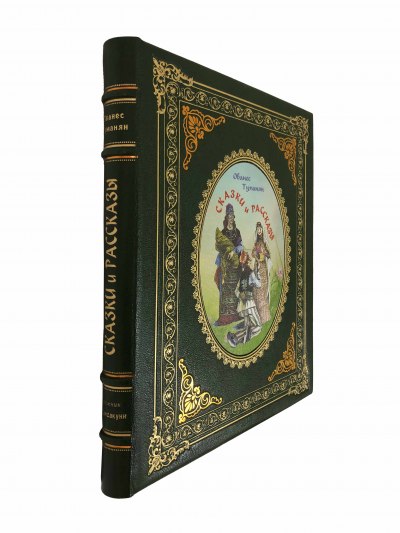 В цельнокожаном переплете ручной работы с тиснением золотом и иллюстрацией на передней крышке. Золотой обрез.