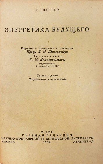 В 1920-х годах немецкий писатель и ученый Г. Гюнтер написал книгу «Энергетика будущего» (на русском языке она вышла в 1933 году). Автор предвидел бурный рост энергетики, считая, что к 1970 году человечество будет нуждаться в мощности, равной одному миллиарду лошадиных сил — по современному счету это 736 миллионов киловатт. (Сегодня легко проверить этот прогноз и убедиться, что Г. Гюнтер многократно ошибся. Общая мощность работавших в 1970 году электростанций почти в две тысячи раз превосходила ту, о которой говорил ученый, она равнялась 1257 миллиардам киловатт.)