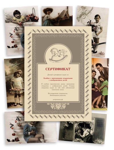 В альбоме представлены редкие цветные и черно-белые винтажные открытки с изображениями позирующих детей. Французские фото открытки начала прошлого века.