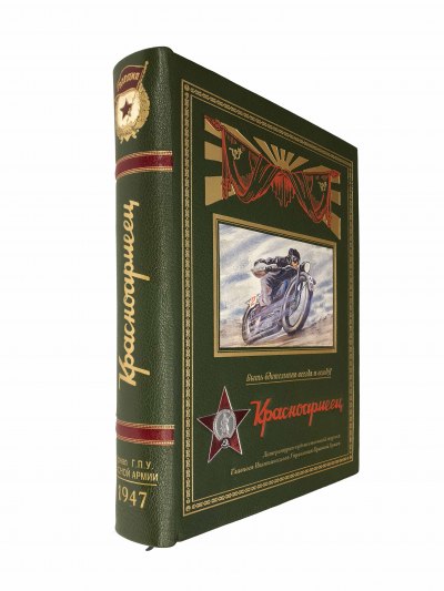 В цельнокожаном переплете ручной работы с тиснением золотом и иллюстрацией на передней крышке. Цветные иллюстрированные обложки сохранены в переплете. Красный обрез.