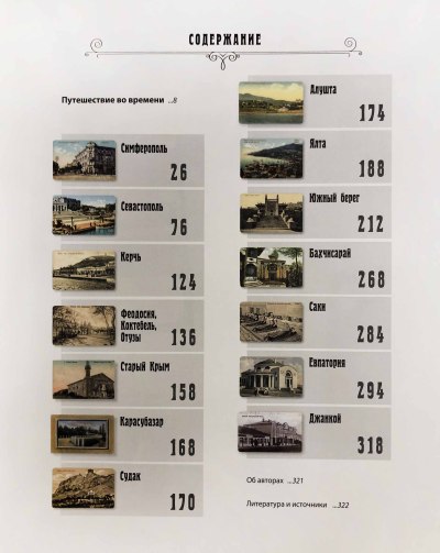 Старая открытка всегда тонко напоминает о многообразии прежней жизни. Получая знания о временах, давно ушедших, мы не единожды ловим себя на мысли, что открытка — свидетель эпохи, красноречивый и убедительный. Когда рассматриваем почтовые карточки, непременно задумываемся, какие мы сегодня и каким Крым останется после нас. Альбом предлагает путешествие по знакомым нам местам, так сильно изменившимся спустя столетие.
