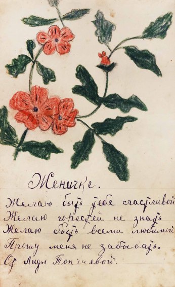 Альбом девочки Жени. Интересный артефакт эпохи, в котором можно увидеть, как общались дети раньше, какие сообщения друг другу писали и как шутили.