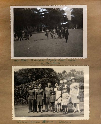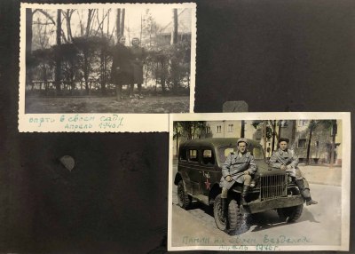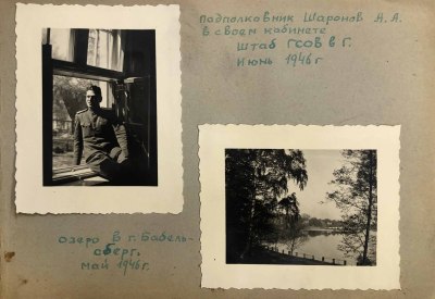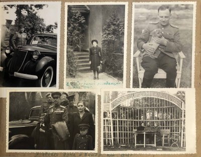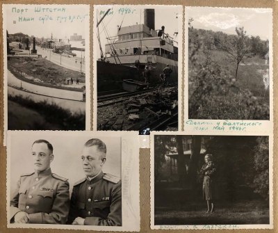 В альбомах множество фотографий посвященных военным событиям (портреты военных, порт с военными кораблями, парад Победы 9 мая 1946 года в Берлине) и семейные фото.