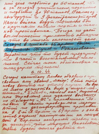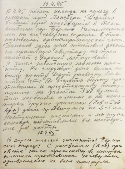 Дневники и фотографии принадлежали подполковнику Желтову П. Ф., участнику войны. В первом дневнике описаны будни военных, как они работали и отдыхали. В тетрадях записаны факты из жизни военных, их разговоры между собой, приказы которые они получали. Вторая тетрадь посвящена деятельности в Германии, в городе Лансберг в 1945 году. Эту информацию нельзя было разглашать, тем более записывать. Поэтому данные артефакты того времени можно считать большой редкостью и уникальностью.