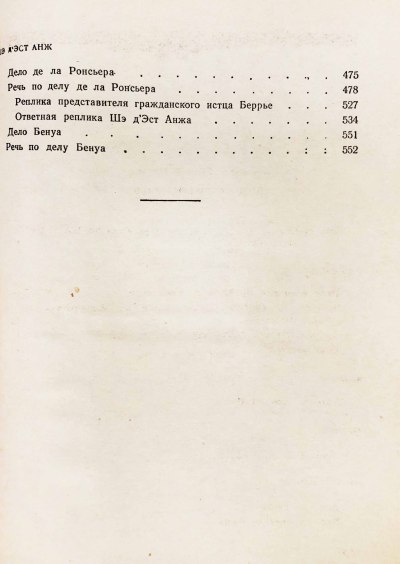Речи, произнесенные в уголовных процессах, знакомят читателей с жизнью и бытом различных слоев французского общества того времени. По некоторым процессам, помимо речей защитников, дается речь обвинителя, обмен репликами прокурора и адвоката.