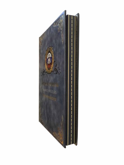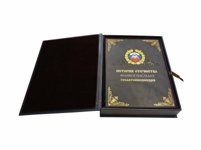 Книга в цельнокожаном переплете ручной работы. Золотое, блинтовое и цветное тиснения. Дизайнерский обрез. Форзац выполнен из дизайнерской бумаги. Книга представлена в подарочном коробе.
