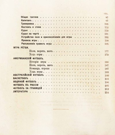 Помимо сведений о футболе, в книге рассказано о таких играх как: регби, американский и австралийский футбол, баскетбол, водяной футбол.