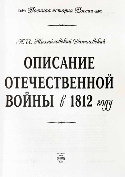 Книга Михайловского-Данилевского является первым полномасштабным трудом по истории Отечественной войны 1812 года. Эта работа до сих пор является одним из главных источников для исследователей эпохи Наполеоновских войн.