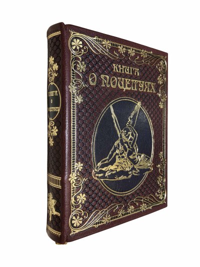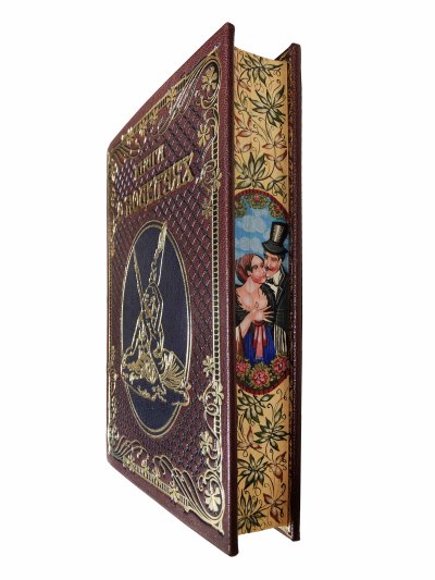 Книга в цельнокожаном переплете с тиснением золотом. Обрезы раскрашены вручную художником.
