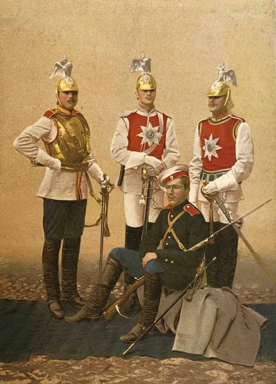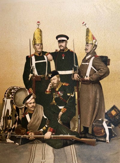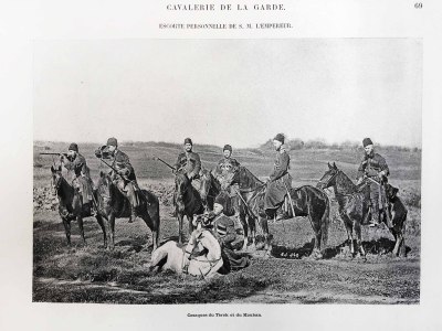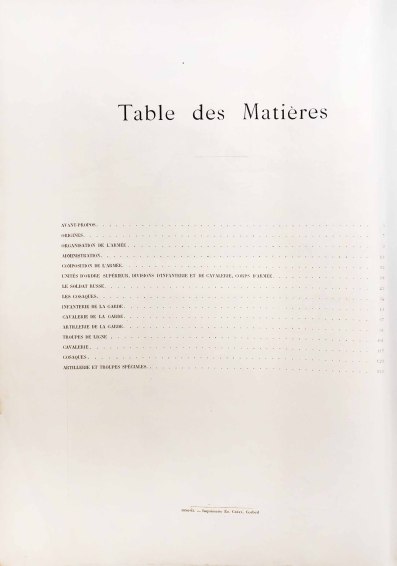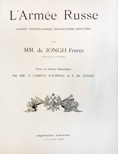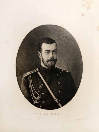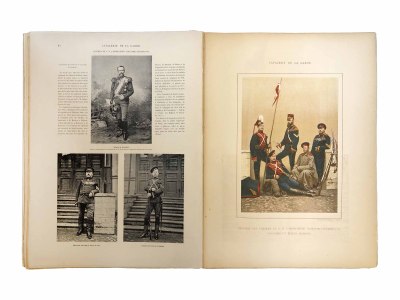 Первое издание, иллюстрированное портретом царя Николая II на фронтисписе и десятками фотографий, включая восемь раскрашенных вручную иллюстраций. Фотографии различных подразделений и родов войск, включая пехоту, кавалерию и артиллерию, а также фотографии тренировок и униформы, используемой в армии.