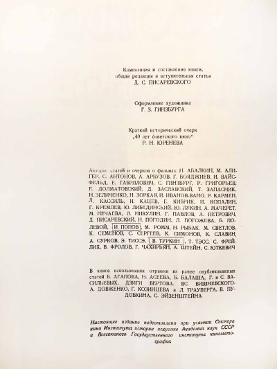 В ней содержатся материалы не только о фильмах, вошедших в золотой фонд советского искусства, но и о произведениях более скромных, а подчас и отражающих известные ошибки и творческие заблуждения их авторов.