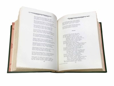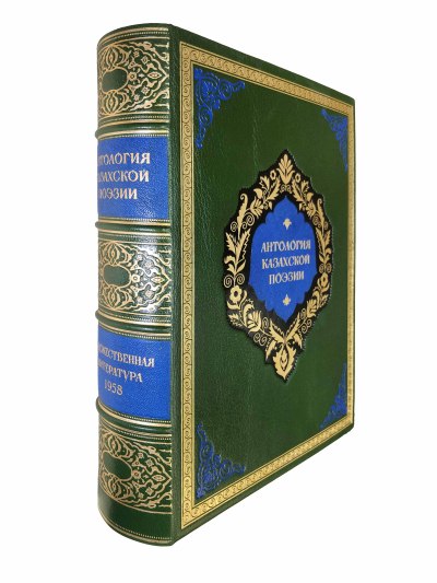 В кожаном переплете ручной работы с тиснением золотом. Иллюстрированные форзацы.