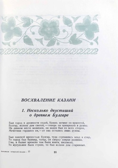В настоящем издании собраны наиболее выдающиеся образцы татарской поэзии всех периодов ее существования начиная с древнего народного эпоса и заканчивая поэзией советской эпохи.