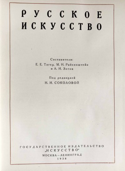 Л., М.: Государственное издательство «Искусство», 1938 г. сост. Е.Е. Тагер, М.Н. Райхинштейн, А.И. Зотов, под ред. Н.И. Соколовой, худ. Г.И. Фишер.
