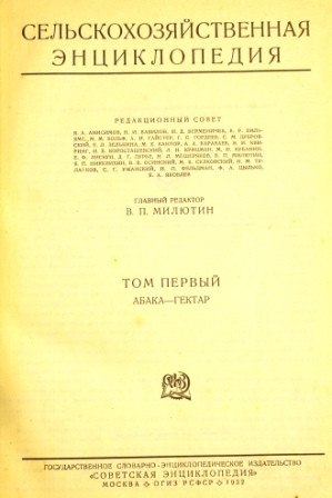 Настоящая энциклопедия рассчитана на весь актив советов, колхозов, совхозов, МТС, хозяйственных объединений, коопераций, профсоюзов и на огромные кадры вузовцев.