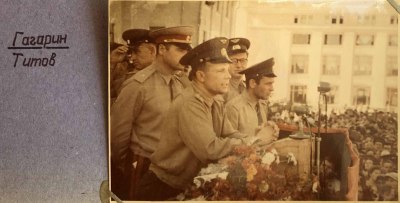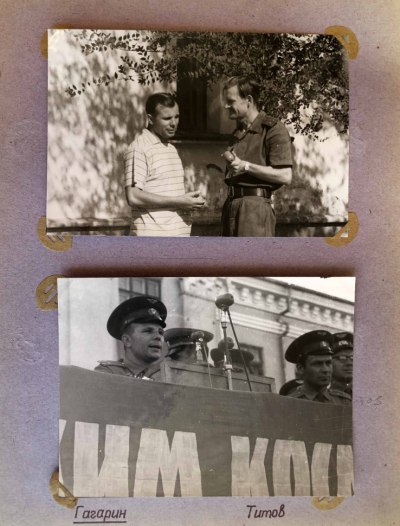 В первом альбоме находятся 113 редких архивных фотографий космонавтов и космодрома Байканур 1960-80 годов. На фото запечатлены Гагарин, Королев, Леонов, Комаров, Терешкова, Беляев, Титов и многие другие. Так же в альбоме есть фотографии космодрома Байконур, ракета-носителя "Восток", фото площади Ленина и Летнего парка на территории Байконура. В альбоме представлены фотографии Гагарина в 1961 году на территории космодрома, фото Гагарина на трибуне, на мероприятиях и в свободное время. Фото Терешковой в скафандре 16 июня 1963 года перед полетом шестого и последнего пилотируемого космического корабля из серии «Восток» («Восток-6»). В альбом вложены страницы из газеты "Красная звезда" 1968 года со статьей о Гагарине.