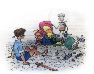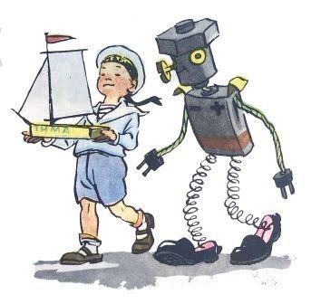«В небольшом, но очень красивом городе живут два маленьких человечка. Они волшебники. Одного зовут Карандаш и у него вместо носа волшебный карандаш. Всё что он нарисует своим носом – тут же оживает и превращается из нарисованного в настоящее. Второй – Самоделкин. Это маленький железный человечек, у которого волшебные руки. Он может за несколько секунд починить и отремонтировать всё что угодно: машину, вертолёт или кораблик….»
