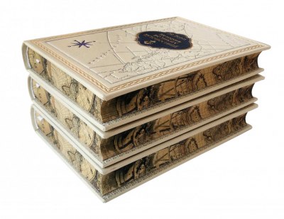 Книги в цельнокожаном переплете ручной работы с тиснением золотом. Дизайнерские форзацы и обрезы. Издание снабжено многочисленными иллюстрациями французских художников, снимками со старинных гравюр и маршрутными географическими картами.