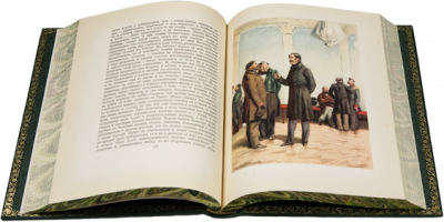 Цветные иллюстрации в книге Петра Федоровича Соколова (1791–1848) русского живописца-акварелиста, родоначальника жанра русского акварельного портрета, академика Императорской Академии художеств.В зеленом цельнокожаном переплете ручной работы с тиснением золотом и иллюстрацией на передней крышке. «Мраморный» об-рез. Зеленое тонкое шелковое ляссе