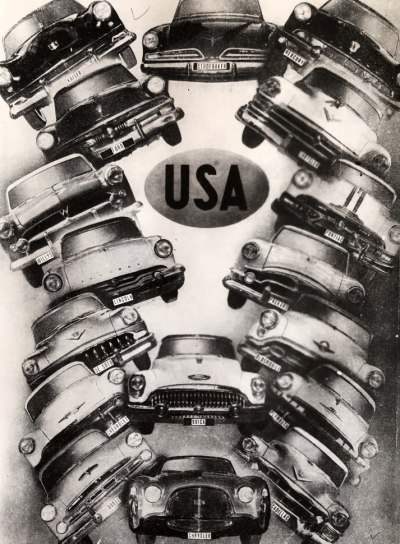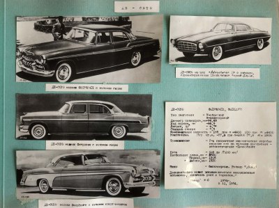 Альбом сделан вручную и иллюстрирует историю самых известных марок автомобилей разных стран. Самый большой раздел отведен США. Потом идет Англия, западная Германия, Германия, Франция и Италия. В качестве иллюстраций собраны вырезки из журналов разных стран и фотографии. В альбоме 58 страниц. Хорошая сохранность.