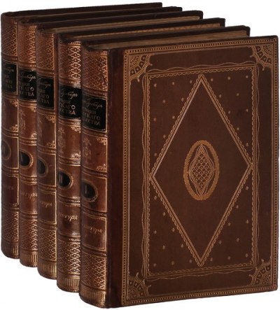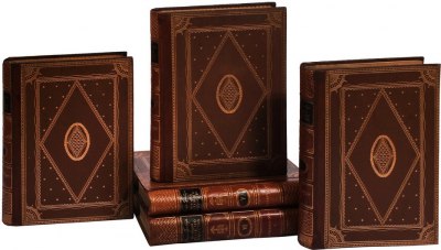 В издательских цельнокожаных переплетах ручной работы с тиснением золотом.