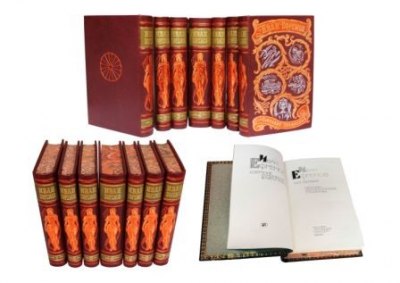 Каждый том в цельнокожаном переплете ручной работы с тиснением золотом