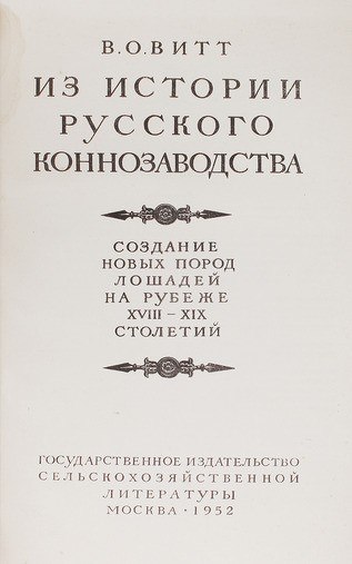 Первая серьезная советская книга по истории коннозаводства. Содержание: Предисловие - Организация Хреновского конского завода и работа его верховых отделений (Состояние русского коневодства и коннозаводства в XVIII веке - Алексей Григорьевич Орлов-Чесменский - Основание Хреновского конского завода - Коннозаводский режим Хренового - Породы лошадей в Хреновском заводе и первые опыты скрещиваний - Создание орловской верховой породы - Роль Хреновского завода в верховом коневодстве перед Отечественной войной 1812 г. - Верховое отделение Хреновского завода при преемниках Орлова - Чистокровное отделение Хреновского завода и ранняя история чистокровного коннозаводства и скачек в России) - Орловский рысак, его создание и дальнейшая работа с породой в Хреновском заводе (Предистория рысистой породы. Упряжное отделение Хреновского завода до Барса 1 - Начальные этапы создания породы: Барс 1, его сыновья и дочери - Общая оценка работы А.Г. Орлова в рысистом отделении Хреновского завода и достигнутых к 1809 г. результатов - Роль тренинга и испытаний при создании орловской рысистой породы - Завершение породы В.И. Шишкиным и создание сложной структуры в рысистой породе - Вторичное прилитие голландской крови в рысистую породу в 1825 г. - Хреновский завод в период 1831-1845 гг. - Частные рысистые конные заводы и собственный завод В.И. Шишкина - Переход Хреновского завода в ведение государства в 1845 г. Государственное коннозаводство в начале XIX в.) - Перечень иллюстраций.