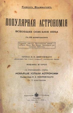 Прижизненное издание фундаментальной книги великого французского просветителя, философа-романтика, астронома и воздухоплавателя Камилла Фламмариона (26 февраля 1842 — 3 июня 1925). Об авторе в совесткое время отзывались так: «Фламмарион был талантливым (наверное, одним из талантливейших!) и известнейшим (наверное,самым известным!) популяризатором науки и, в частности астрономии. Только сейчас найдя и прочитав впервые его книги, издававшиеся ранее на русском языке лишь в начале века, я с изумлением обнаружил, как много просветительско-популяризаторских идей Фламмариона использовалось позже и растиражировалось по изданиям советского периода, безо всяких, конечно, ссылок на источник вдохновения». Популярная астрономия — самая известная книга автора. Впервые выпущена в 1880 году во Франции рекордным для того времени тиражом в 100 000 экземпляров и распродана в течение месяца. Затем книга выдержала множество переизданий в течение десятков лет и была переведена на все основные европейские языки (включая русский) , отмечена премией Французской Академии наук. В более позднем советском издании 1939 г. уже использован сокращенный перевод. Предлагаемая книга — самое полное издание, без сокращений.