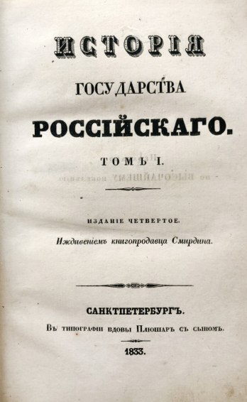 «История государства Российского» — многотомное сочинение Н. М. Карамзина, описывающее российскую историю начиная с древнейших времен до правления Ивана Грозного и Смутного времени. Труд Н. М. Карамзина не был первым описанием истории России, но именно это произведение благодаря высоким литературным достоинствам и научной скрупулезности автора открыло историю России для широкой образованной публики и наибольшим образом способствовало становлению национального самосознания. По словам Пушкина «все, даже светские женщины, бросились читать историю своего Отечества, дотоле им неизвестную. Древняя Русь, казалось, найдена Карамзиным, как Америка Колумбом». Карамзин писал свою «Историю» до конца жизни, но не успел ее закончить. Текст рукописи 12 тома обрывается на главе «Междоцарствие 1611-1612», хотя автор намеревался довести изложение до начала правления дома Романовых.