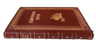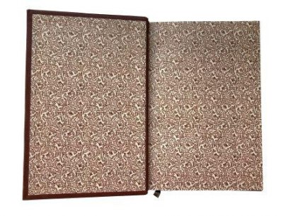В цельнокожаном переплете ручной работы с тиснением золотом.