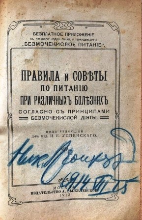 болезнях, согласно с принципами безмочекислой диеты. Под ред. д-ра мед. И. Е. Успенского.