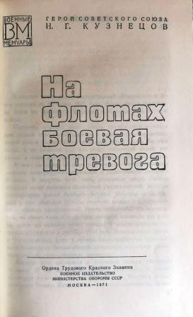 «В книге воспоминаний «Накануне» я рассказывал о довоенном периоде и довел повествование до 22 июня 1941 года. Предвоенный период и начало войны — всего лишь один из эпизодов невиданного в истории вооруженного столкновения. Мои воспоминания — это не детальный анализ предвоенного периода, а лишь обыкновенные человеческие воспоминания. В последующей книге «На флотах боевая тревога» я начал рассказ о Великой Отечественной войне.»