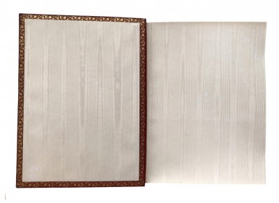 В цельнокожаном переплете ручной работы с золотым тиснением.