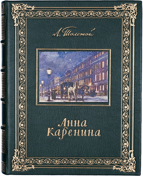 Знаменитый роман великого русского писателя Льва Николаевича Толстого (1828 –1910) о трагической любви замужней дамы Анны Карениной и блестящего офицера Вронского, в котором представлена масштабная картина нравов и быта дворянской среды Петербурга и Москвы второй половины XIX века. «Анна Каренина» — одно из тех произведений, которые принесли мировую славу русскому реалистическому роману XIX века. Первое книжное издание романа вышло в 1878 г. Иллюстрации А.Н. Самохвалова (1894–1971), выдающегося русского и советского художника-живописца и графика, соединившего в своих произведениях черты модерна, символизма и соцреализма.Каждый том в зеленом цельнокожаном переплете ручной работы с тиснением золотом и иллюстрацией на передней крышке.Обрез с зеленым краплением. Зеленое тонкое шелковое ляссе