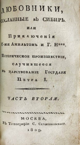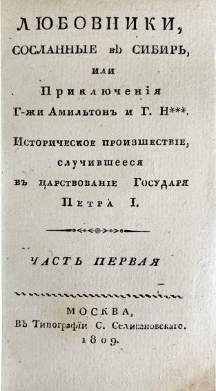 Любовники, сосланные в Сибирь, или Приключения г-жи Амильтон и г. Н***: Историческое произшествие, случившееся в царствование государя Петра I.