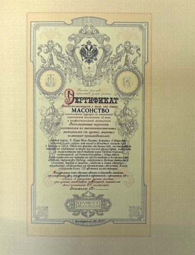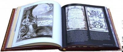 В коричневом цельнокожаном переплете ручной работы с масонскими символами на передней крышке