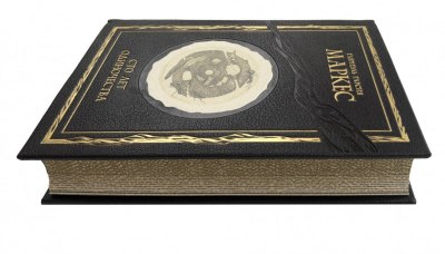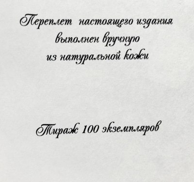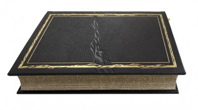 В цельнокожаном переплете ручной работы с тиснением золотом.