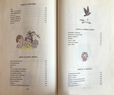 Книга включает стихотворные сборники "Круглый год", "Разноцветная книга", "Школьные годы", "Вчера и сегодня", "Дети нашего двора", "Стихи о войне и мире", "Ребята и зверята", "Детки в клетке", "Разные истории", "Судьбы вещей", "Сказка ложь, да в ней намек…", переводы из английских народных песенок "По всему свету", "Из чешских народных песенок", из Роберта Стивенсона "Вересковый мед", из Роберта Бернса "Честная бедность" и другие.