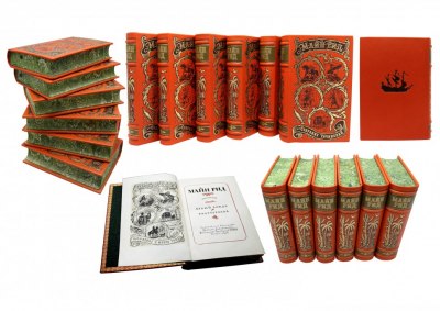 Каждый том в цельнокожаном переплете ручной работы с тиснением золотом.