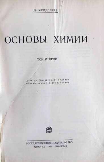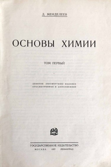 «Основы химии» Д. И. Менделеева — это исторически первое современно руководство по неорганической химии, материал в котором был систематизирован и распложен в соответствии с периодическим законом химических элементов. В 1868 году Менделеев приступил к работе над «Основами химии». Работая над этим курсом, он открыл периодический закон химических элементов. По преданию, 17 февраля 1869 года он после долгого чтения неожиданно заснул на своём диване в кабинете и ему приснилась периодическая система элементов.