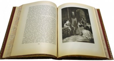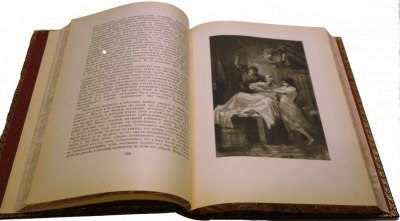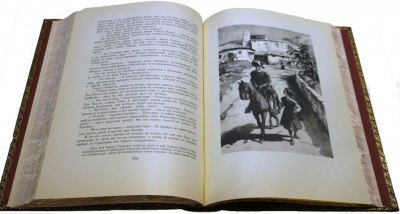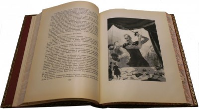 Великолепно оформленное подарочное советское издание в современных цельнокожаных переплетах ручной работы с тиснением золотом и иллюстрациями на передних крышках. В отличном состоянии.