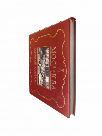 Книга в цельнокожаном переплете ручной работы с золотым тиснением на передней крышке и корешке.