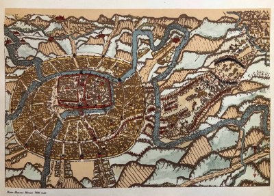Книга в издательском переплете с тиснением. В книге 9 распашных и раскладных листов, вклейки меньшего формата и карта в четыре сложения. Большой формат.