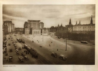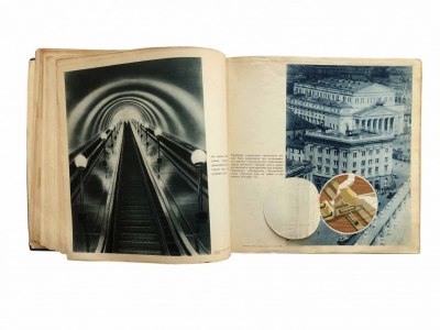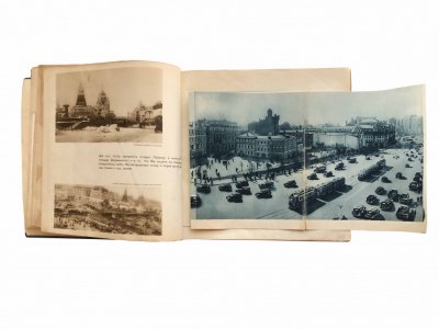 Легендарное издание, оформленное в духе конструктивизма. Альбом стал наглядным документом поразительных изменений, произошедших в городе буквально за десять лет. Реконструкция столицы шла по всем направлениям: перепланировка, железнодорожные узлы, строительство метро, канал Москва-Волга, озеленение, новые жилые массивы. Фотографии домов соседствуют с фантастическими перспективами будущих сооружений. Одно из лучших парадных изданий 1930-х годов.