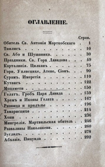 Часть первая рассказывает о Грузии. В продолжение восьми месяцев Муравьев собирал жития почти всех святых Грузинской Церкви, для чего изучал патерики, хранящиеся в обителях, записывал устные предания. Он рассказывает о многих древних храмах и монастырях, чудотворных иконах.