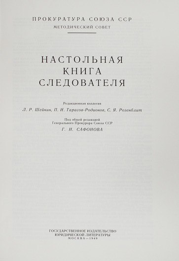 М.: Государственное издательство юридической литературы, 1949г. ил. Под ред. Шейнина Л.Р., Тарасова - Родионова П.И, Розенблита С.Я. Репринтное издание 1949 г. — СПб.: Альфарет, 2014. — 884 с.
