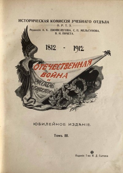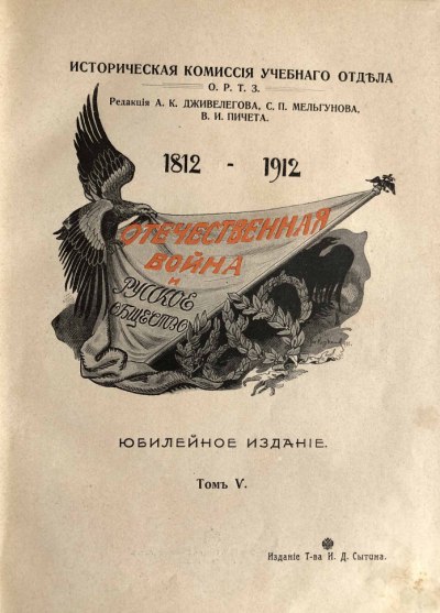 Одно из самых полных изданий, выпущенных к празднованию 100-летнего юбилея победы над Наполеоном. Отечественная война 1812 года — один из самых драматических и вместе с тем самых значительных по последствиям моментов русской истории. Она оставила глубокий след в общественной жизни России. События Отечественной войны запечатлены в многочисленных памятниках и произведениях искусства, в том числе и в русском книгоиздании.