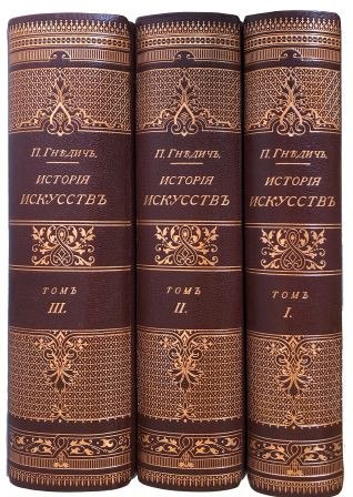 Самое полное, третье, издание единственного оригинального русского курса истории искусства. Первая монография начинающего еще искусствоведа Петра Петровича Гнедича (1855–1925) под заглавием «История искусств с древнейших времен» вышла в 1885 г. в одном томе. Инициатором издания выступил А.Ф. Маркс. Следующее издание вышло в 1897 г. уже в трех томах. Вскоре «Историю» можно было найти только у антиквариев за двойную цену. К третьему изданию 1907 г. был дополнен и совершенно заново обработан по тексту и иллюстрациям третий том; были сделаны изменения и в первых двух томах. в трехтомник входят 98 л. иллюстраций (34 цветных и 64 на цветном фоне). Эта книга, написанная живо и увлекательно, с привлечением фактического материала и богато иллюстрированная, дает общедоступные знания по истории искусств, включая историю архитектуры, скульптуры, живописи, быта, нравов и одежды всех народов с древнейших времен.
