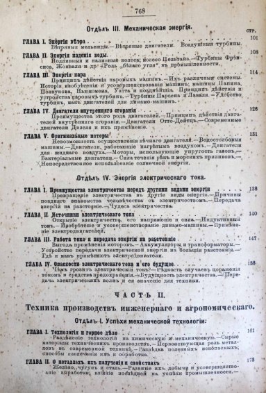 Энциклопедия «новейших» достижений науки и техники и исторических очерк о развитии технических достижений человечества. В книге описаны «орудия» писания, самоиграющие музыкальные инструменты, кинематографические аппараты, переплетные машины, освещение городов, оружейное дело, телеграф без проводов, телеграфон и телерайтер, пневматическая почта, подводный флот, электрические железные дороги, воздухоплавание, передача энергии на расстоянии и проч. Текст снабжен большим количеством фотоиллюстраций.