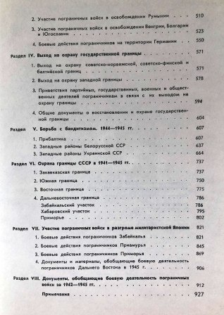 граничащим с Советским Союзом в районе Закавказья. Шестой раздел знакомит читателя с обстановкой на нашей южной границе. В седьмом разделе сосредоточены документы и материалы об обстановке и деятельности пограничных войск в районе советско-китайской границы на участках Киргизии, Казахстана, Алтайского края и Тувы. Материалы и документы восьмого раздела разносторонне и глубоко раскрывают сложную обстановку на наших дальневосточных рубежах, где СССР граничит с северными провинциями Китая, с Японией и Соединенными Штатами Америки. Девятый раздел содержит общие документы, в которых сосредоточены обобщающие сведения об обстановке и боевой деятельности советских пограничных войск на нескольких или на всех участках государственной границы.
